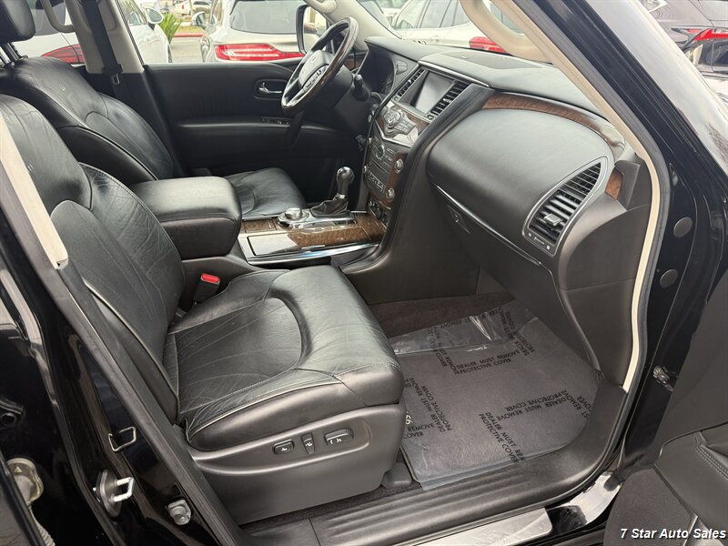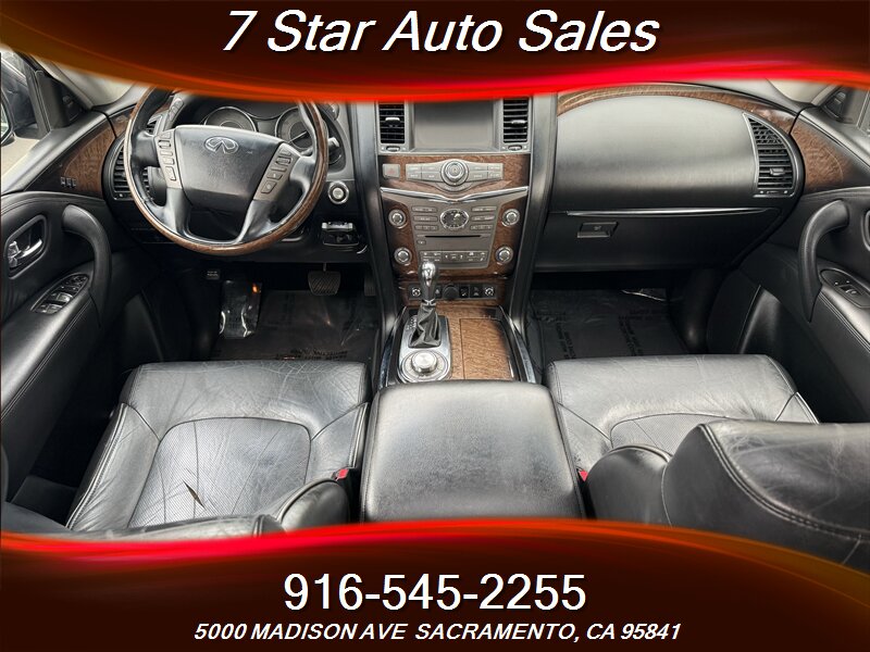 Draped in a stylish Black Obsidian exterior, this QX56 is basically the James Bond of SUVs. Whether you’re rolling through the city or cruising down the highway, you’ll turn heads faster than you can say, “I’ll take the parking spot right up front, thank you very much.” And while other vehicles may blend in, this glossy black finish shouts sophistication like a tuxedo at a pajama party!
