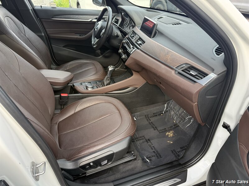 2017 BMW X1 xDrive28i — Mineral White Metallic outside, Mocha leather inside, and enough pep to make your grocery runs feel like a victory lap.